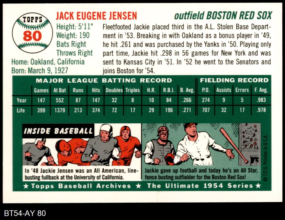1954 Topps Archives #80 Jackie Jensen 8 - NM/MT