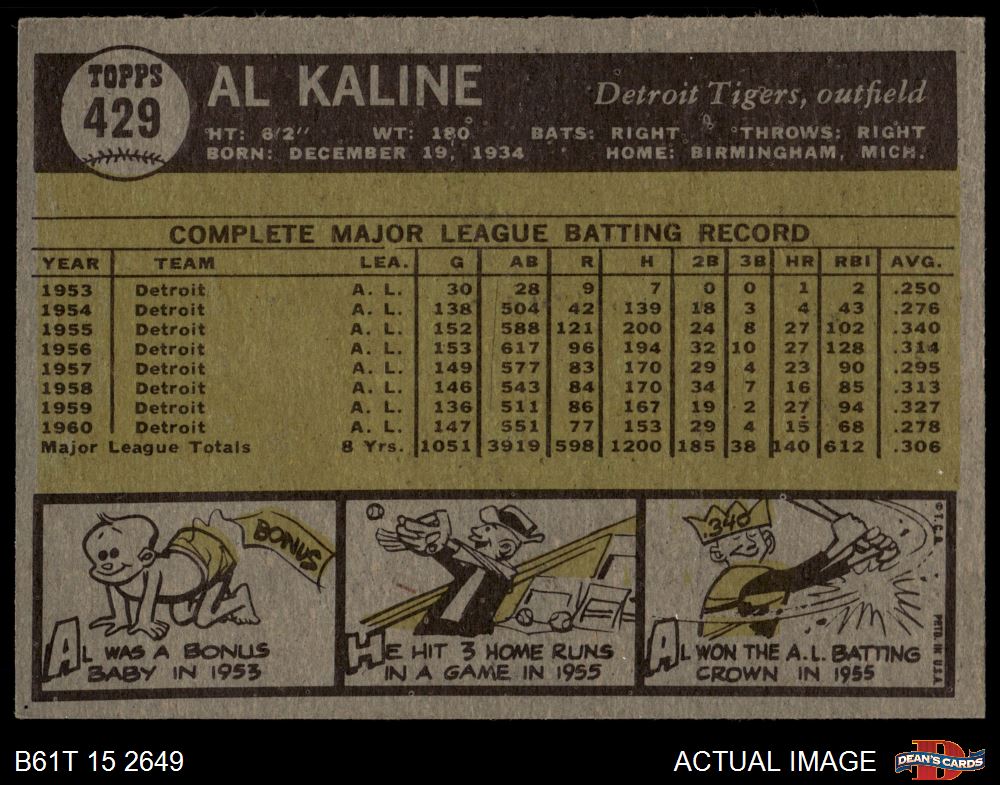 1961 Topps #429 Al Kaline