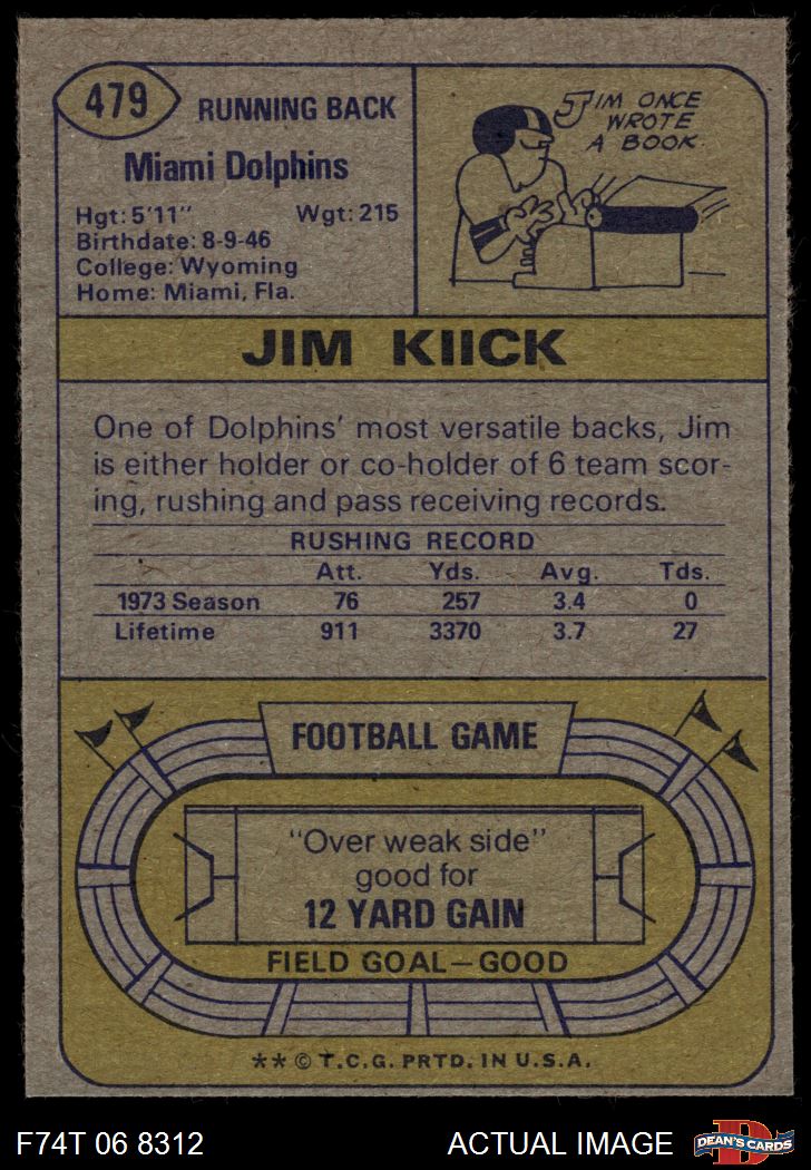 1974 Topps #479 Jim Kiick 4 - VG/EX