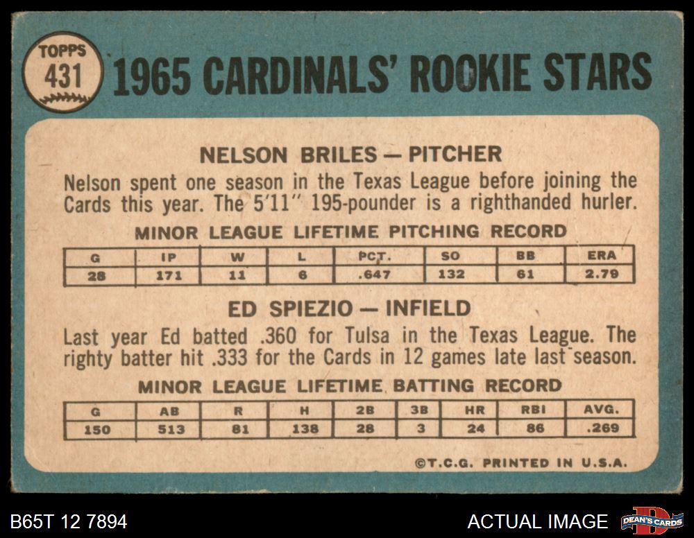 1965 Topps #431 Cardinals Rookies