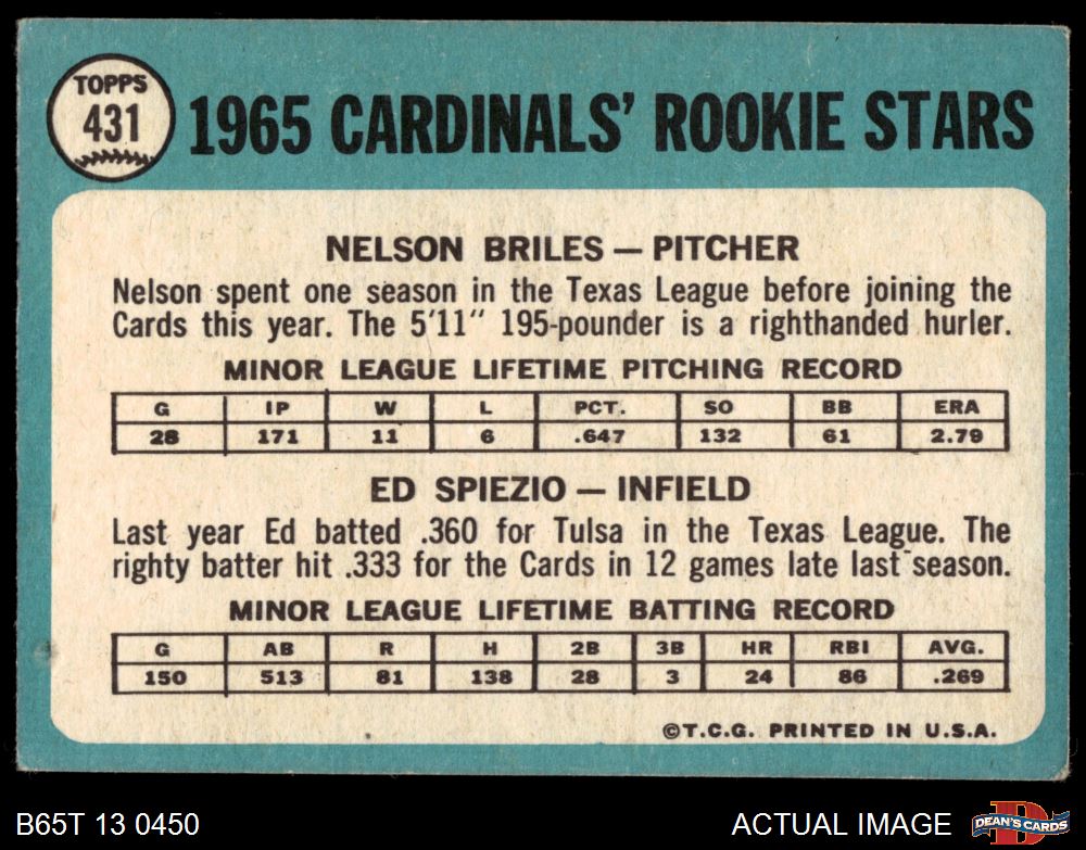 1965 Topps #431 "Briles" is not blacked out - Nelson Briles / Wayne Spiezo Cardinals Rookies 2 - GOOD