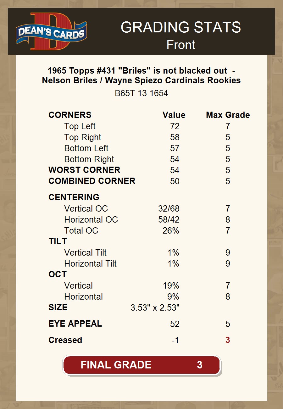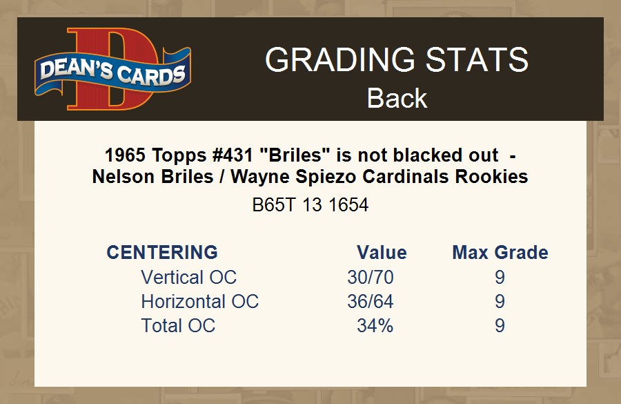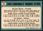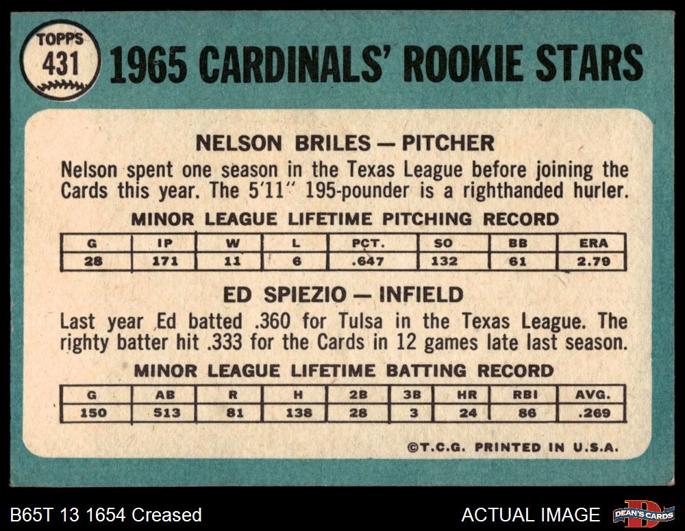 1965 Topps #431 "Briles" is not blacked out - Nelson Briles / Wayne Spiezo Cardinals Rookies 3 - VG