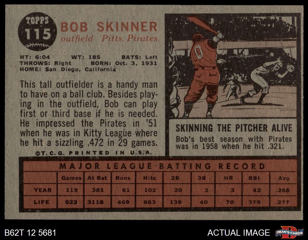 1962 Topps #115 NRM Bob Skinner 2 - GOOD