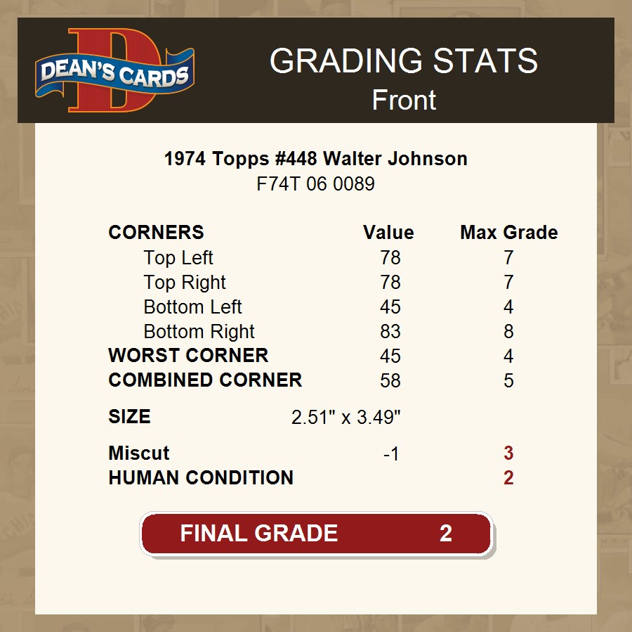 1974 Topps #448 Walter Johnson