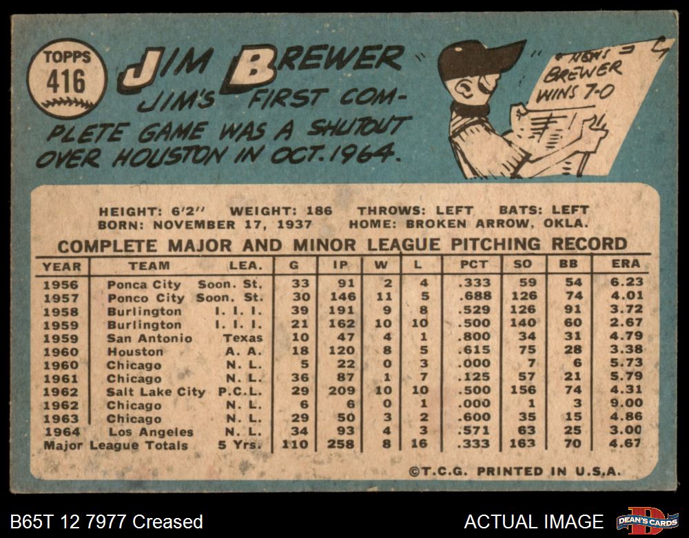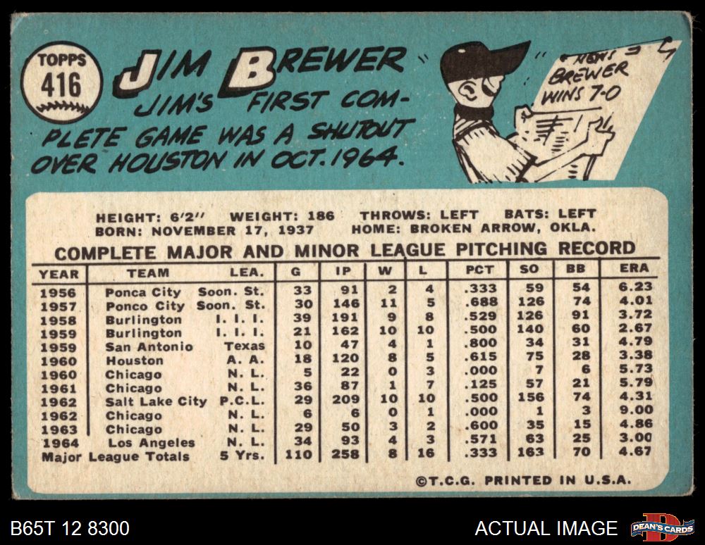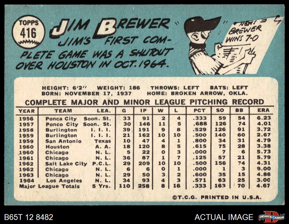 1965 Topps #416 Jim Brewer