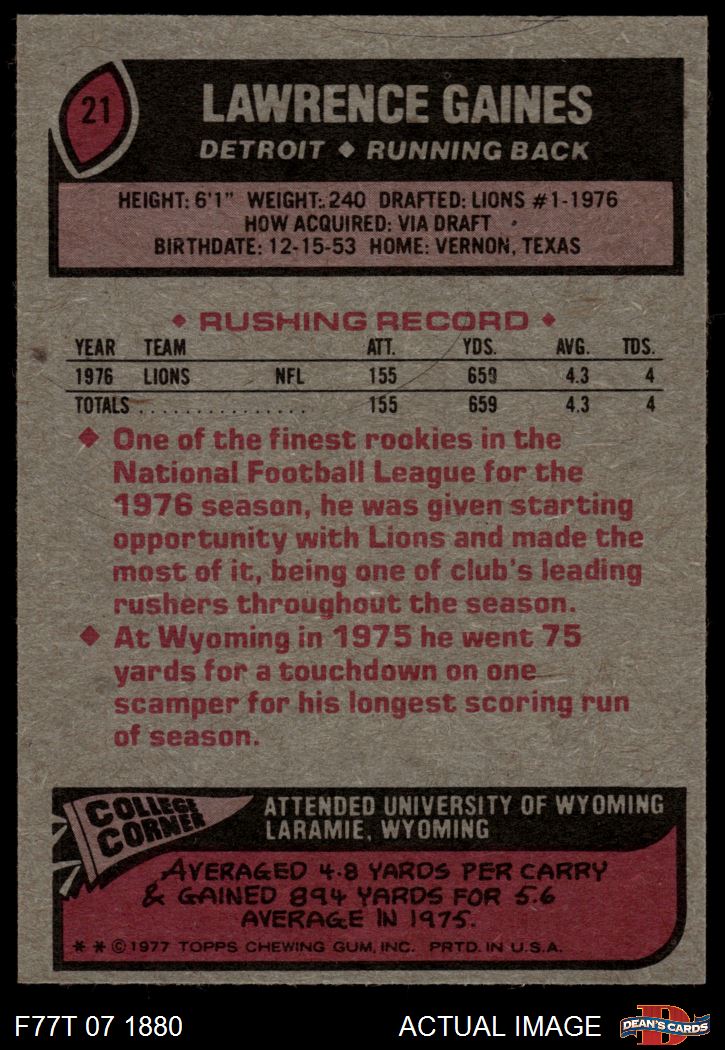 1977 Topps Football Cards (11,061 available)1977 Topps Lions (471 available)