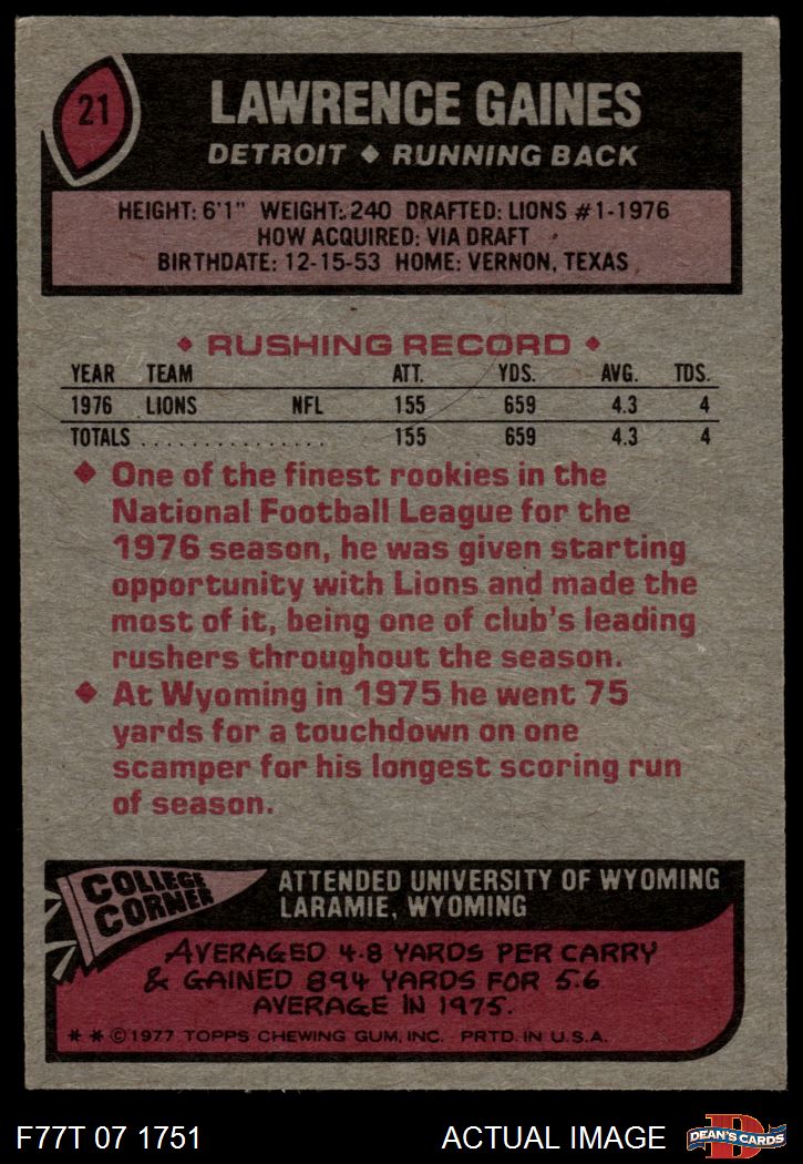 1977 Topps #21 Lawrence Gaines 5 - EX