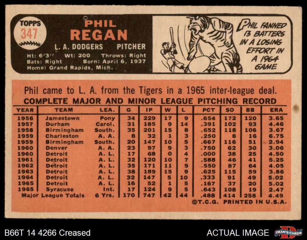 1966 Topps #347 Phil Regan 3.5 - VG+
