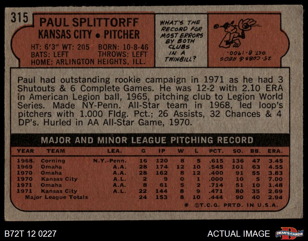 1972 Topps #315 Paul Splittorff 2 - GOOD