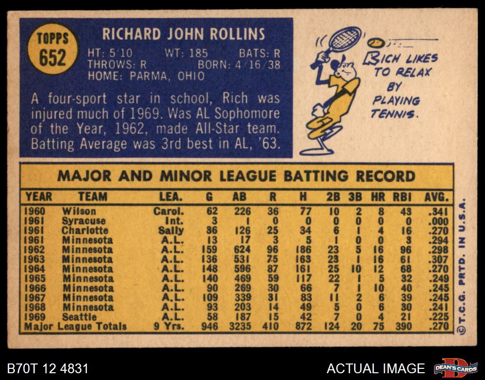 1970 Topps #652 Rich Rollins 6 - EX/MT