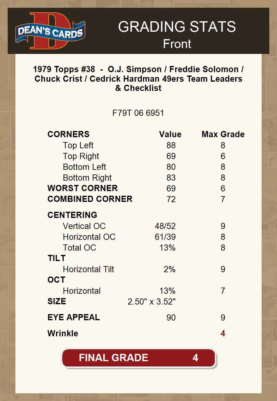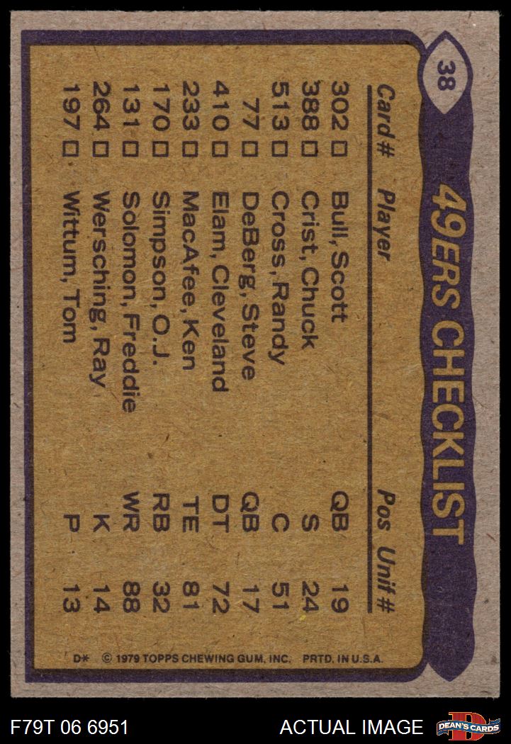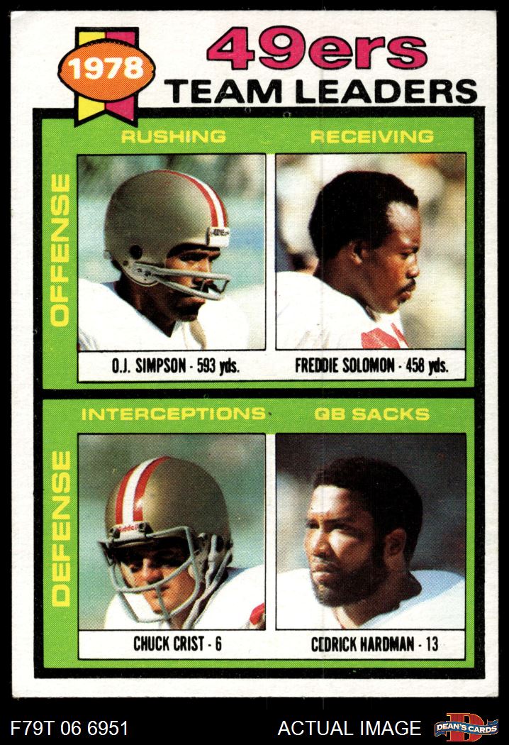 1979 Topps #38 - O.J. Simpson / Freddie Solomon / Chuck Crist / Cedrick Hardman 49ers Team Leaders & Checklist 4 - VG/EX