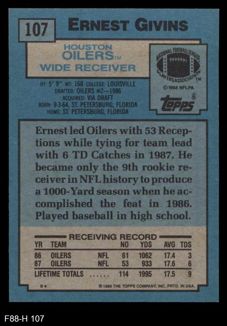 1988 Topps #107 Ernest Givins