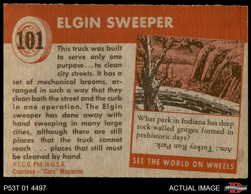 1954 Topps World on Wheels #101 Elgin Sweeper 4 - VG/EX
