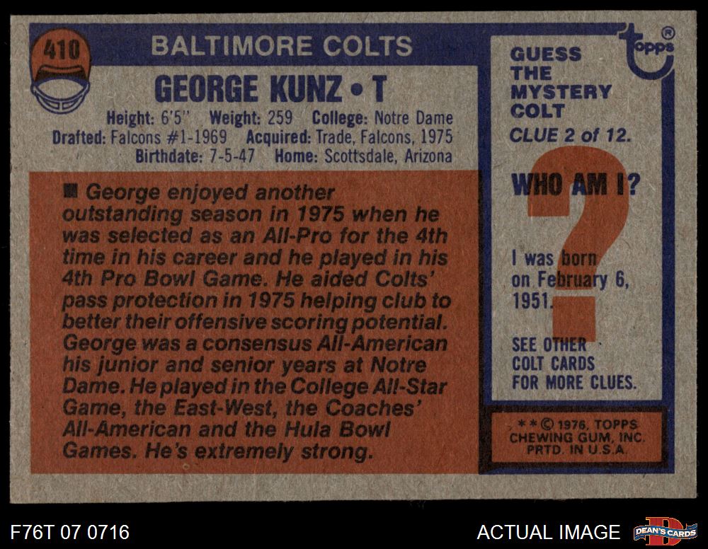 1976 Topps #410 George Kunz 6 - EX/MT
