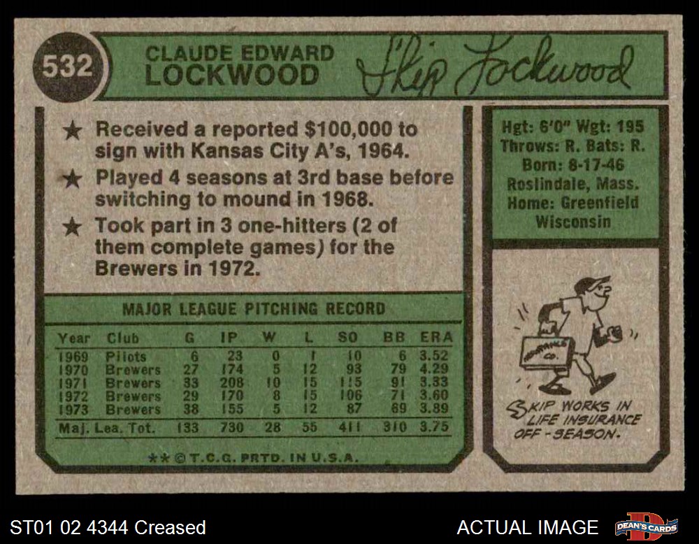 1974 Topps #532 Skip Lockwood Front Thumbnail