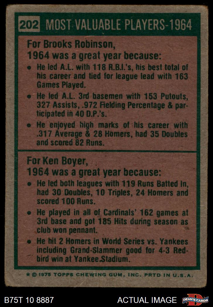 1975 Topps #202 - Brooks Robinson / Ken Boyer 1964 MVPs 1 - POOR