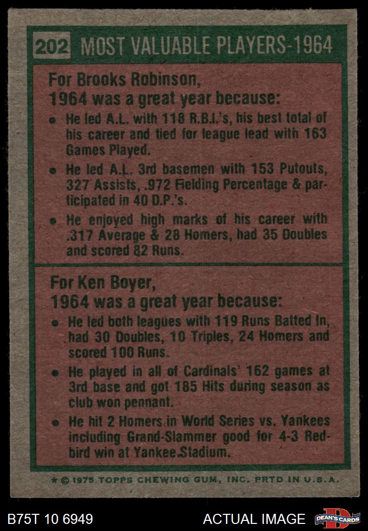 1975 Topps #202 - Brooks Robinson / Ken Boyer 1964 MVPs 3 - VG