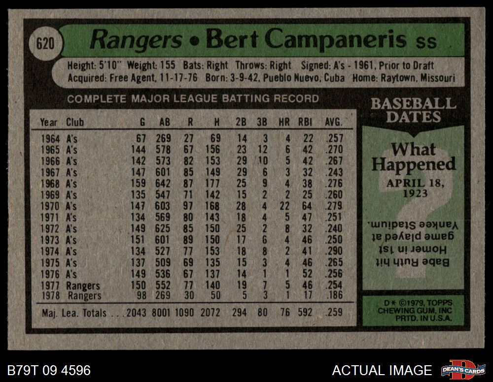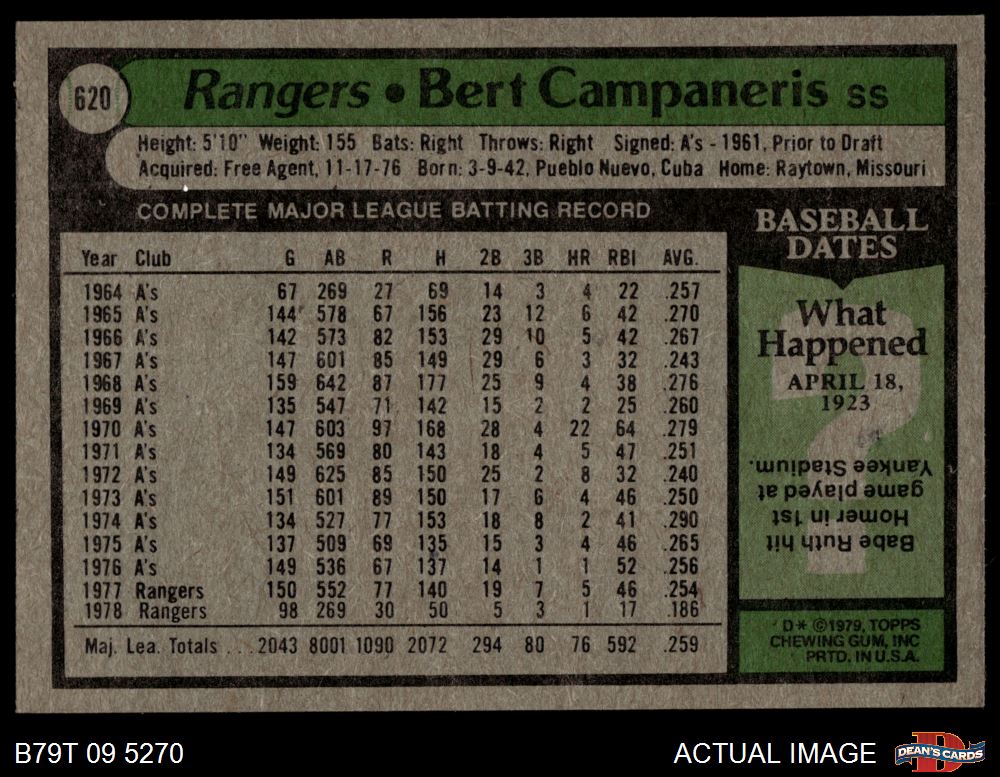 1979 Topps #620 Bert Campaneris