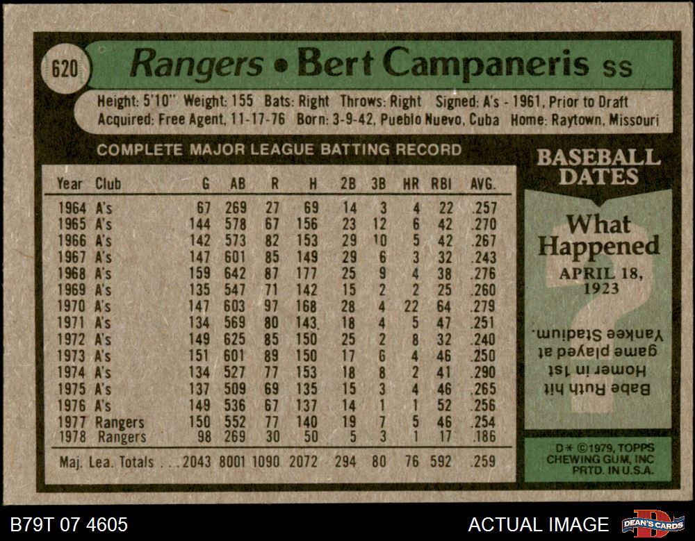 1979 Topps #620 Bert Campaneris 4 - VG/EX