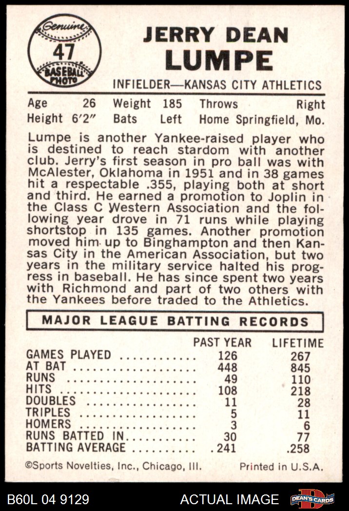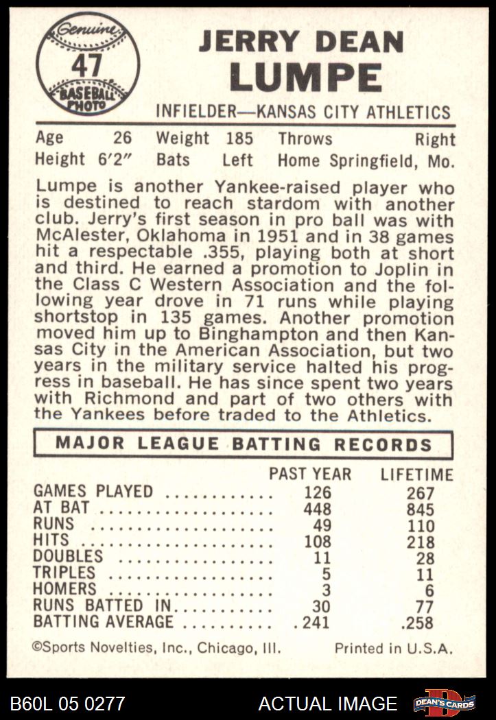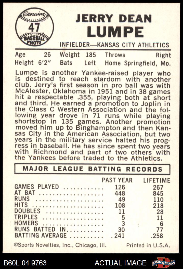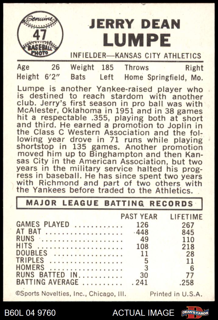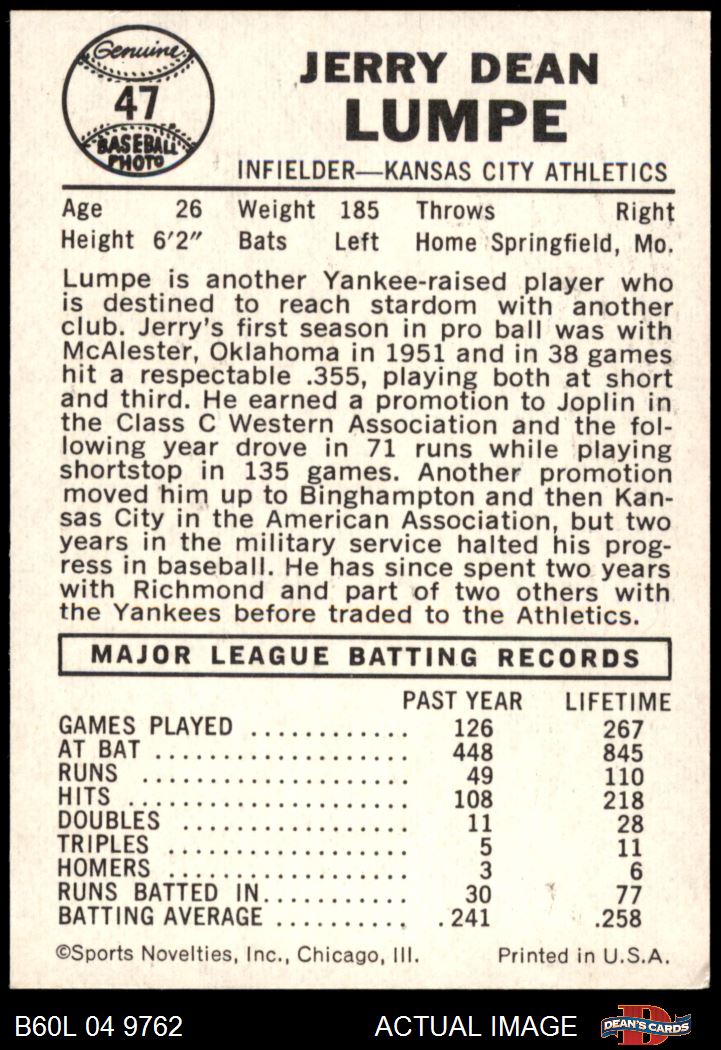 1960 Leaf #47 Jerry Lumpe