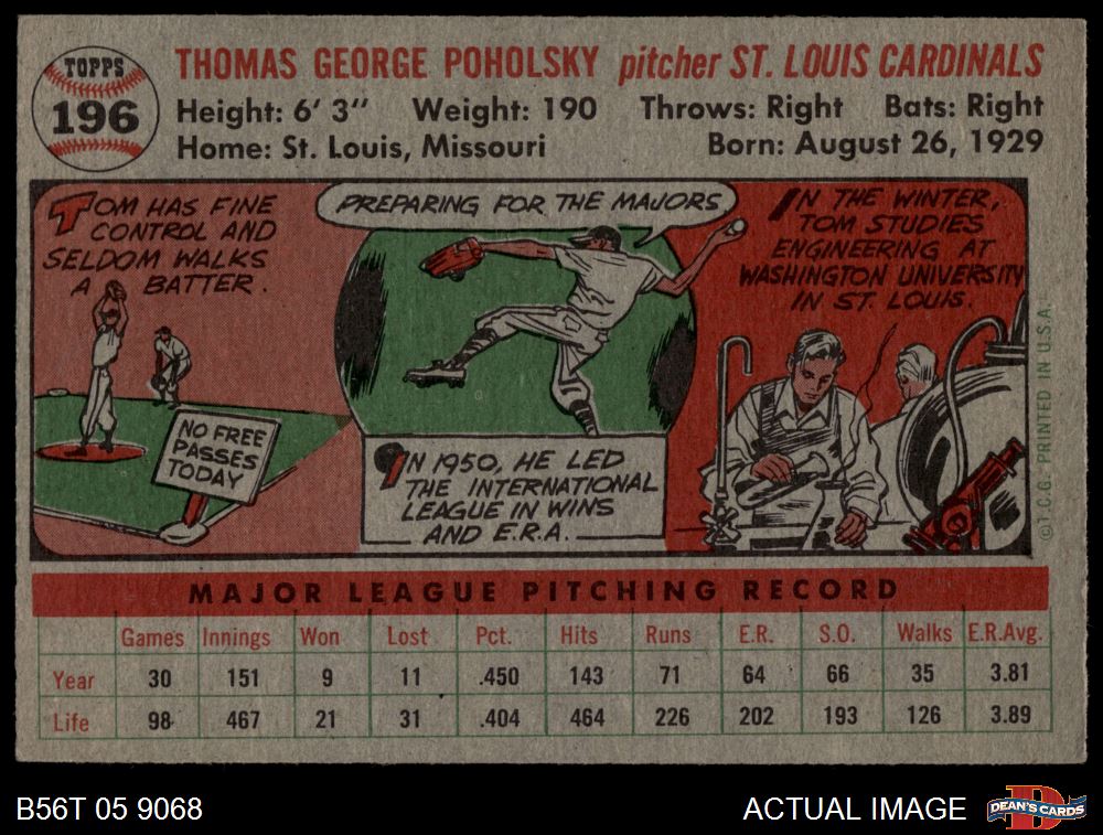 1956 Topps #196 Tom Poholsky