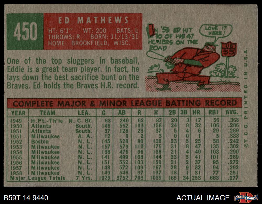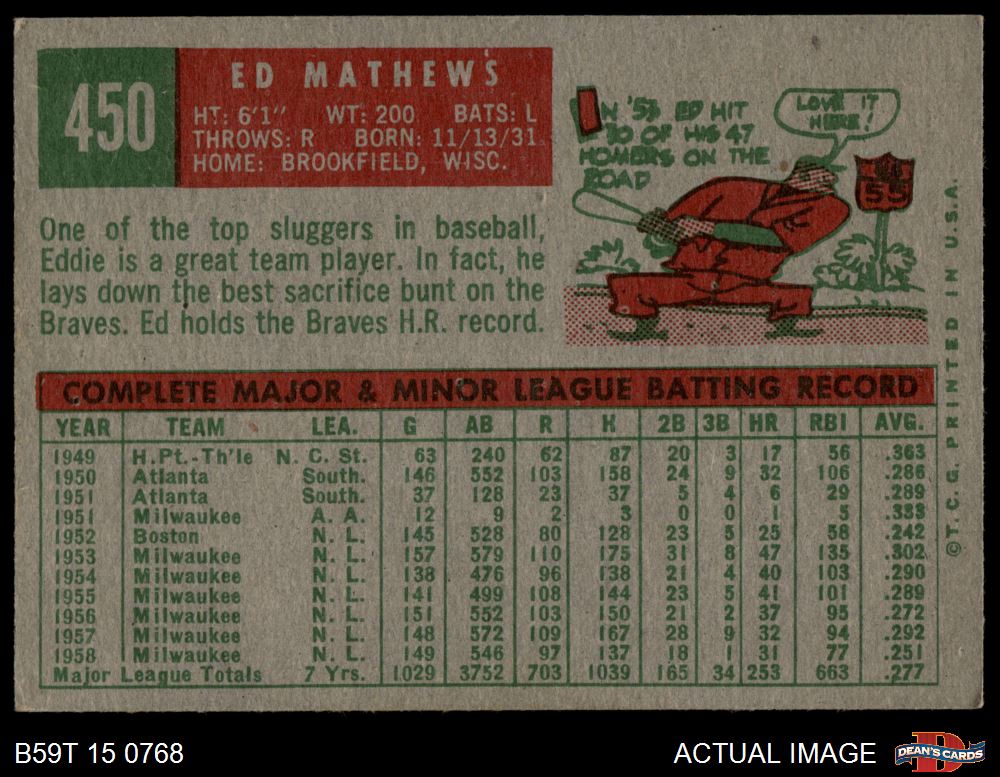 1959 Topps #450 Eddie Mathews 4 - VG/EX