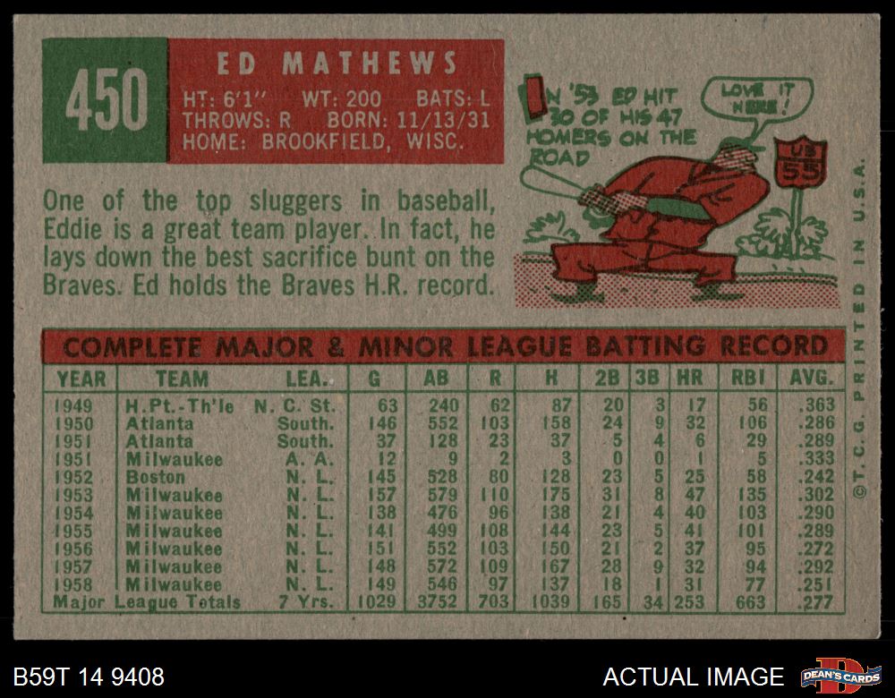 1959 Topps #450 Eddie Mathews 6 - EX/MT