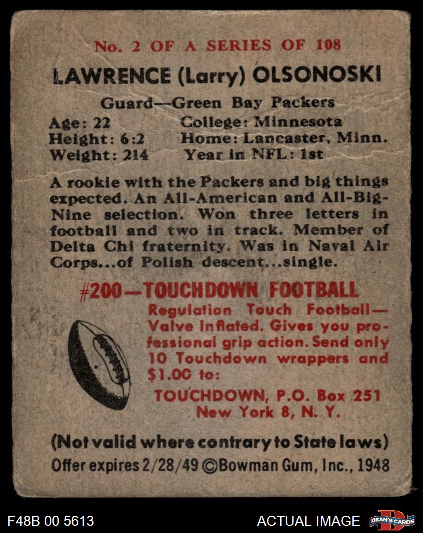 1948 Bowman #2 Larry Olsonoski 1 - POOR