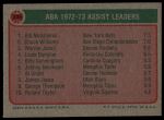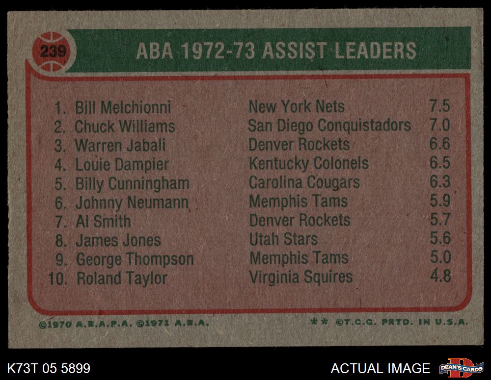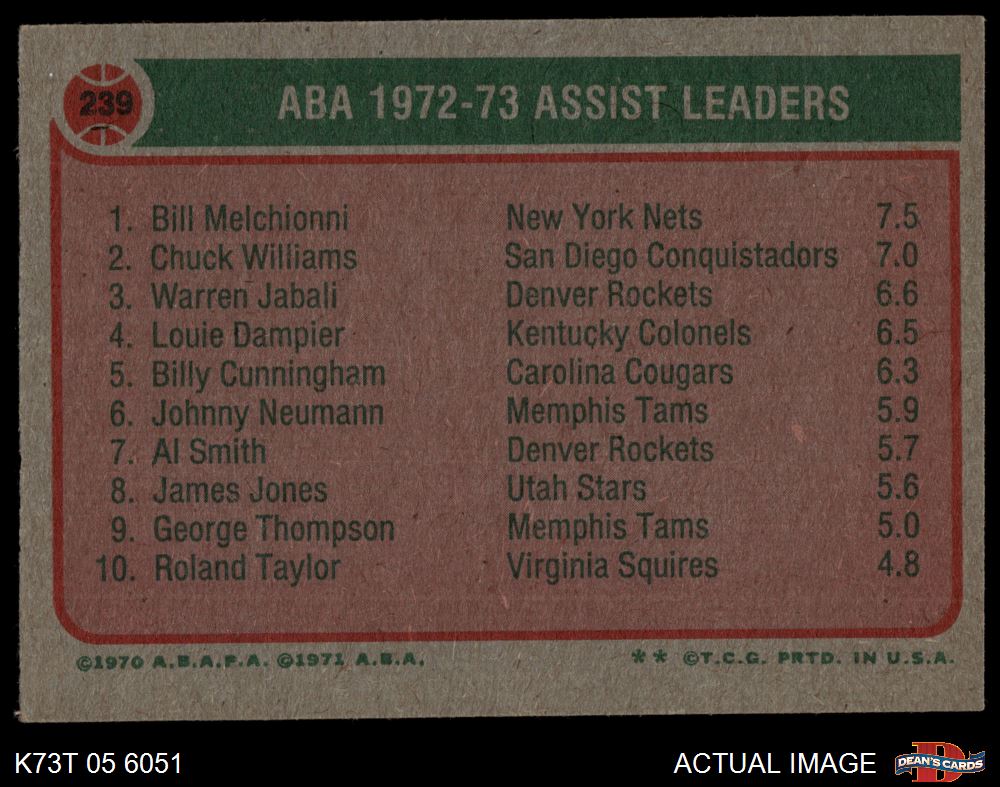 1973 1973 #239 - Bill Melchionni / Chuck Williams / Warren Jabali ABA Assists Leaders 6 - EX/MT