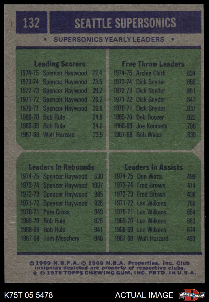 1975 Topps #132 Sonics Leaders