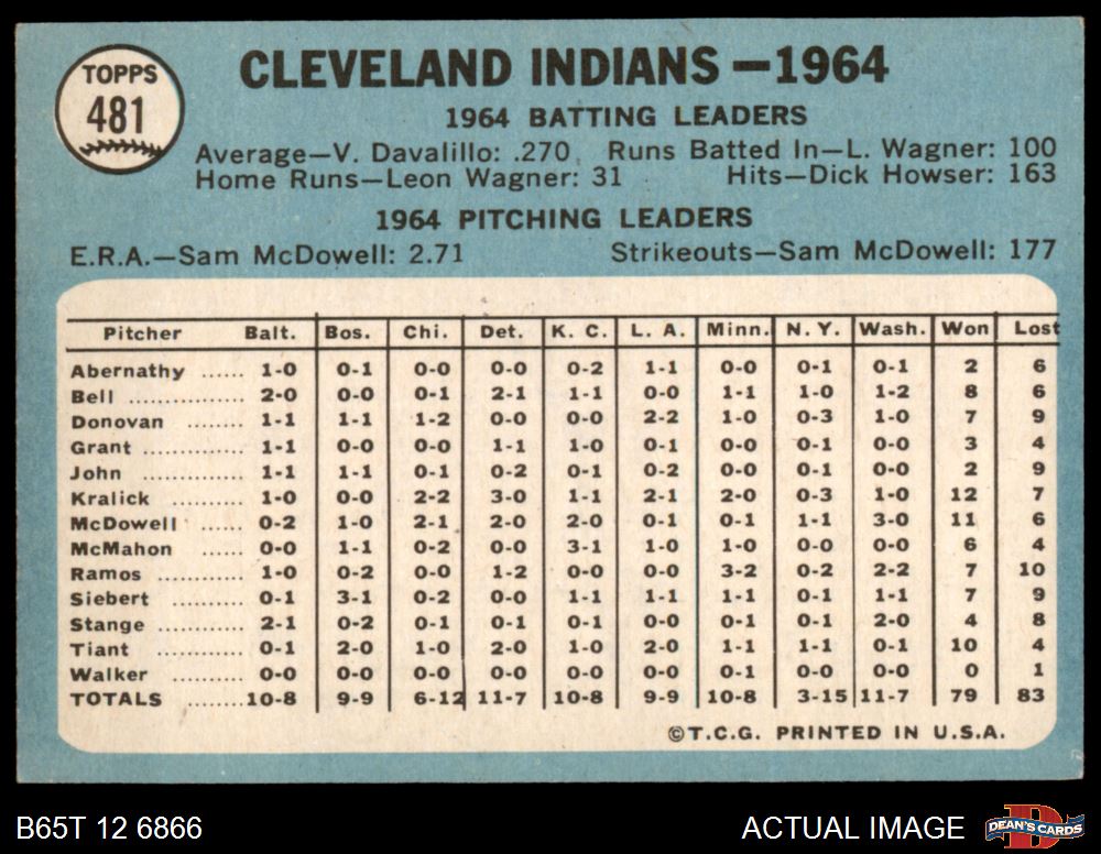 1965 Topps #481 Indians Team 4 - VG/EX