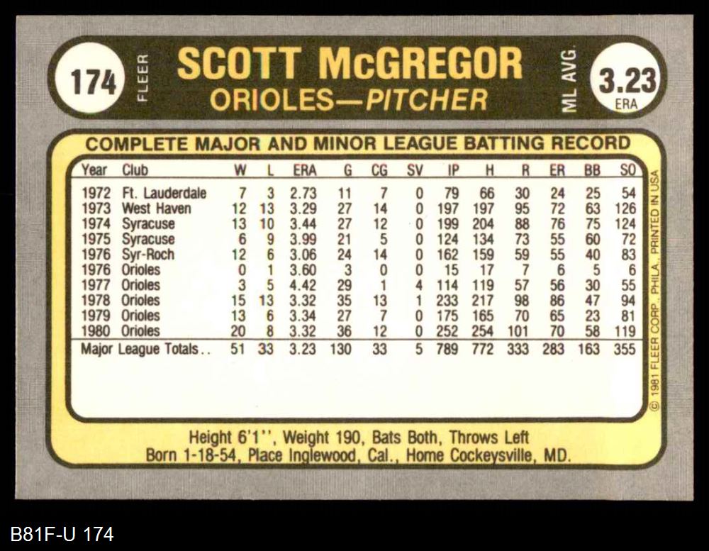 1981 Fleer #174 Scott McGregor