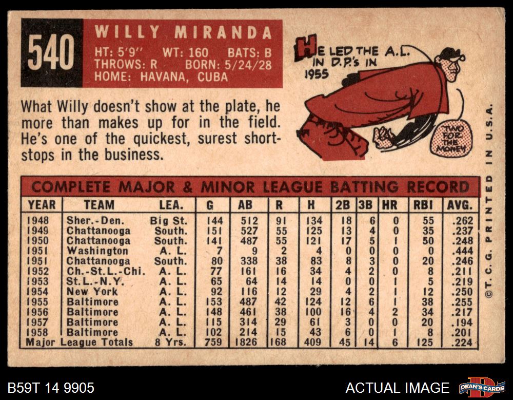 1959 Topps #540 Willy Miranda