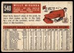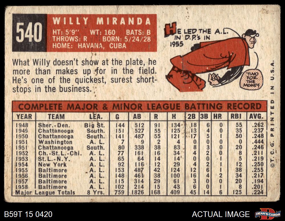 1959 Topps #540 Willy Miranda 2 - GOOD