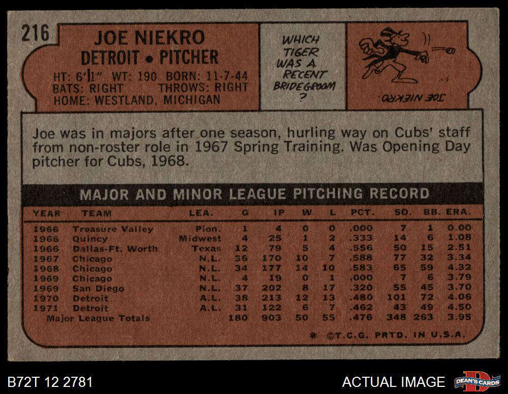 1972 Topps #216 Joe Niekro 2.5 - GD+
