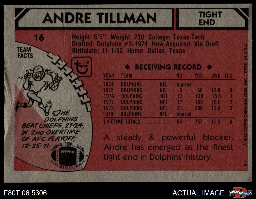 1980 Topps #16 Andre Tillman 1.5 - FAIR