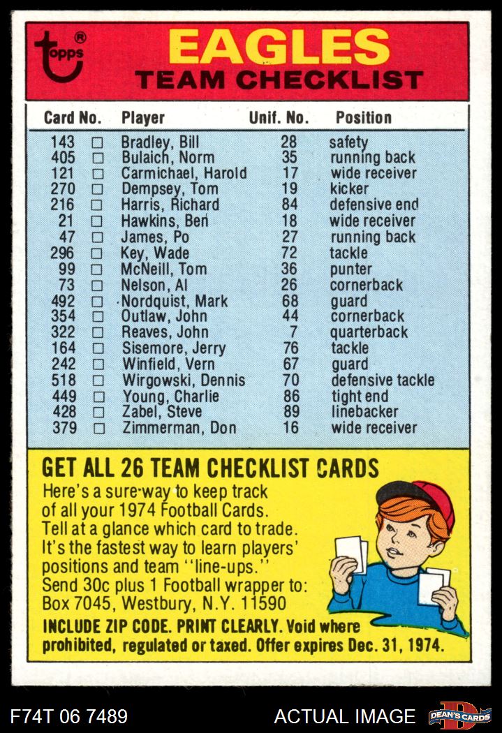 1974 Topps Football Cards (12,235 available)1974 Topps Checklist Eagles (14 available)