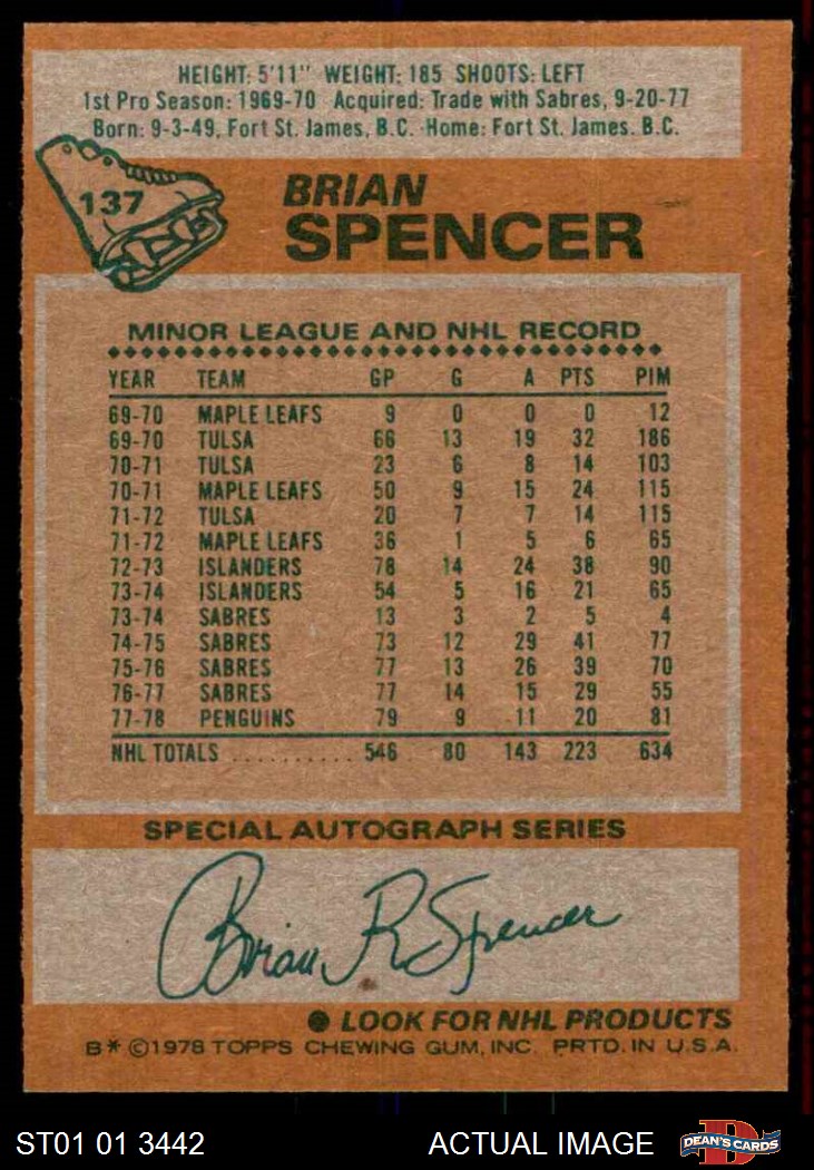 1978 Topps #137 Brian Spencer 4 - VG/EX