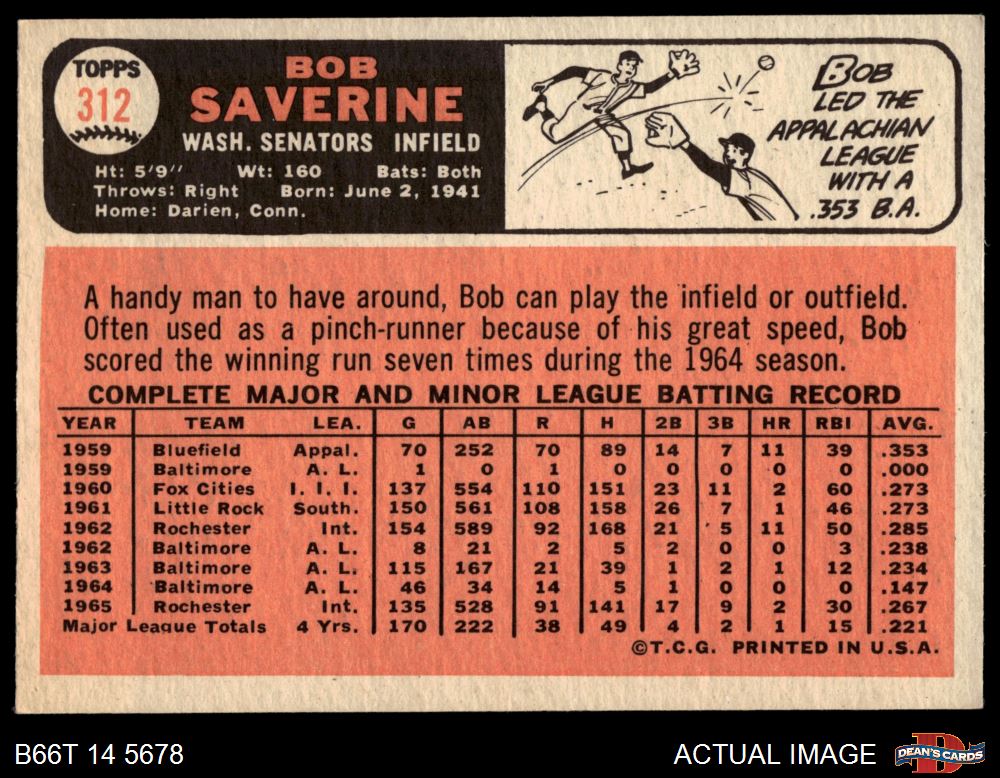 1966 Topps Baseball Cards (16,496 available)1966 Topps Senators (1,209 available)
