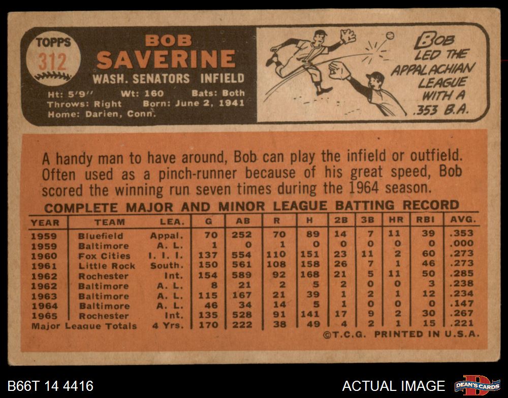 1966 Topps #312 Bob Saverine 2 - GOOD