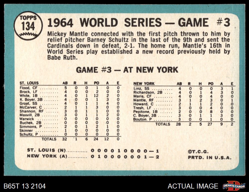1965 Topps #134 - Mickey Mantle 1964 World Series - Game #3 - Mantle's Clutch HR 6 - EX/MT