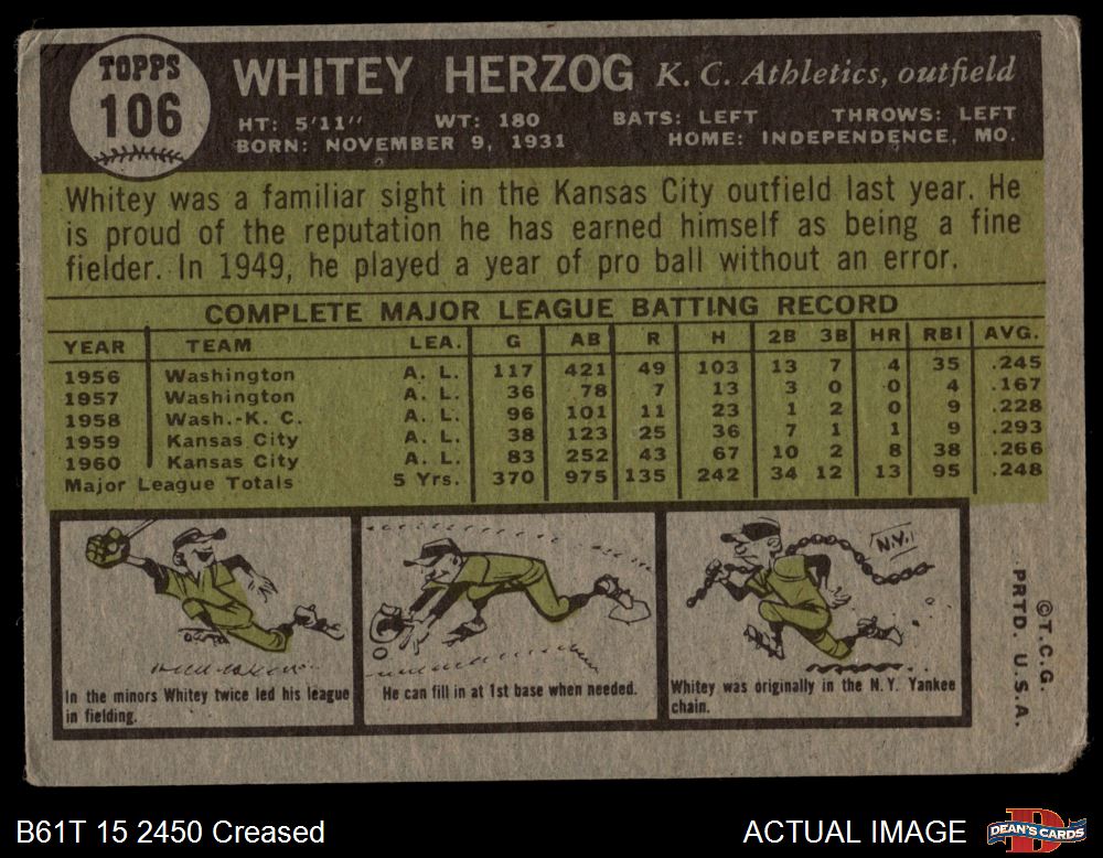 1961 Topps #106 Whitey Herzog 1 - POOR