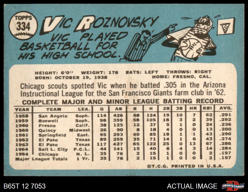 1965 Topps #334 Vic Roznovsky 5 - EX