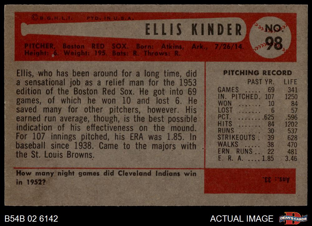 1954 Bowman #98 Ellis Kinder 4 - VG/EX