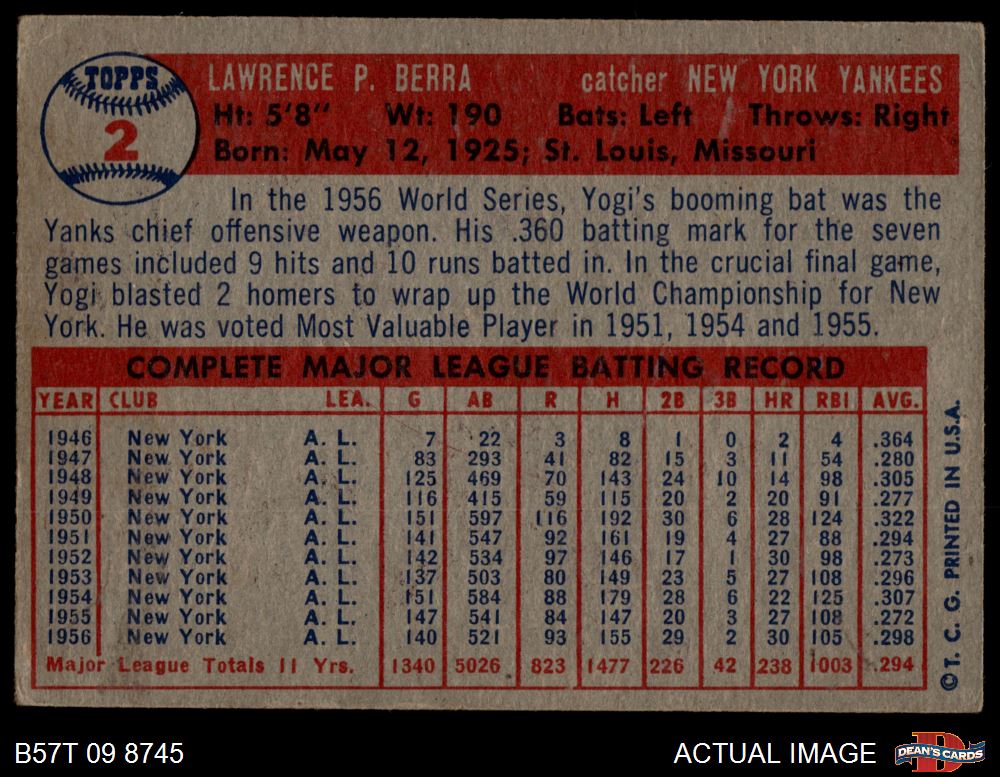 1957 Topps #2 Yogi Berra 2 - GOOD