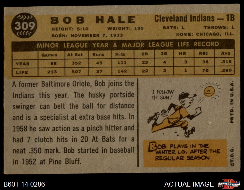 1960 Topps #309 Bob Hale 2.5 - GD+