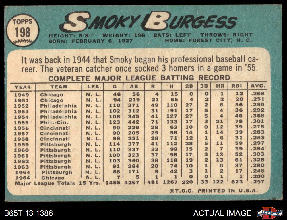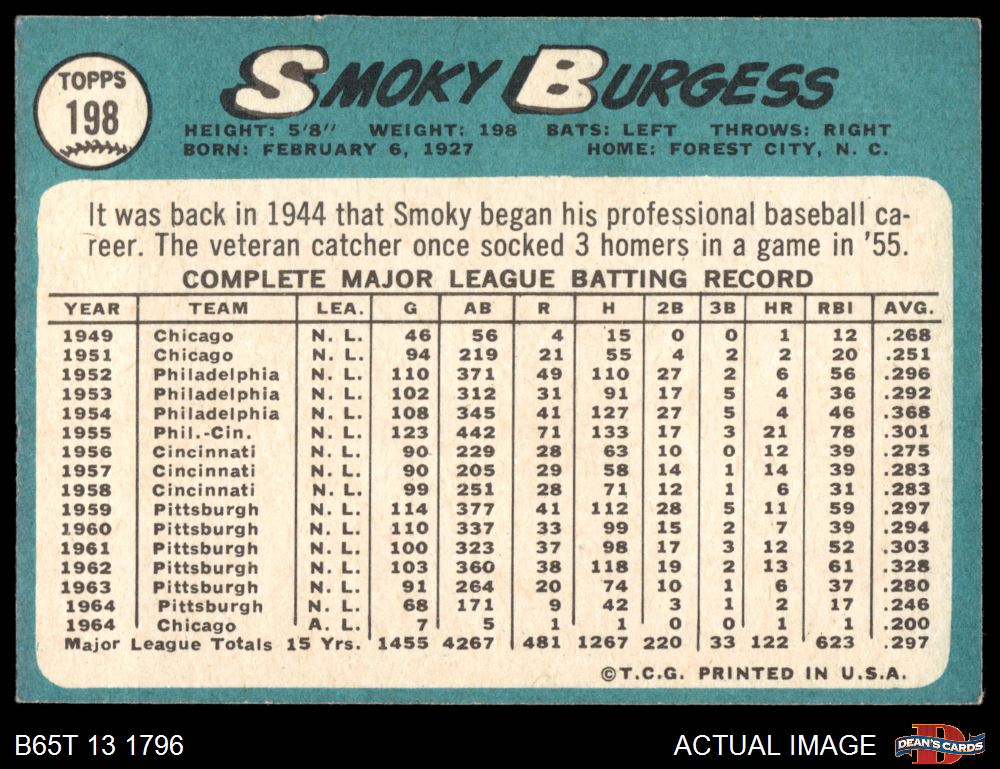1965 Topps #198 Smoky Burgess 4 - VG/EX
