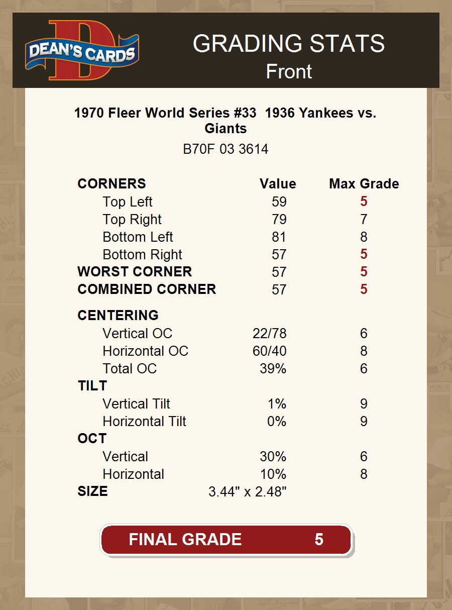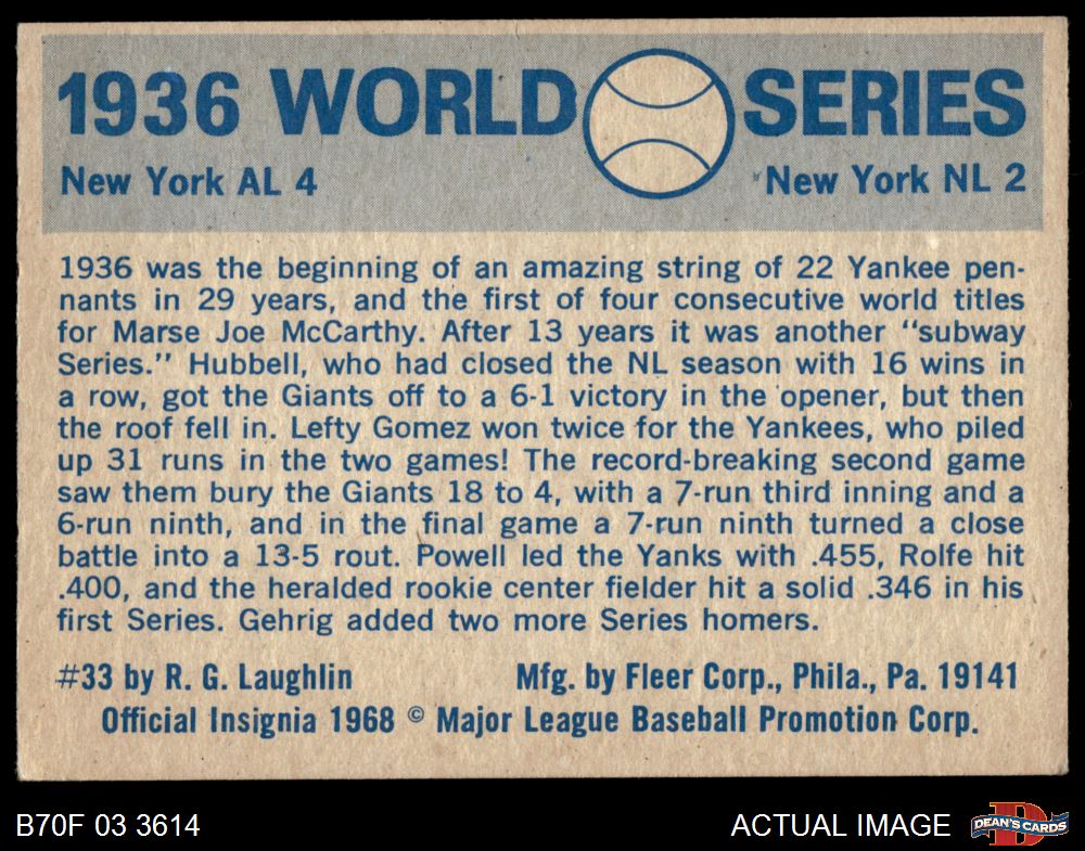 1970 Fleer World Series #33 1936 Yankees vs. Giants 5 - EX
