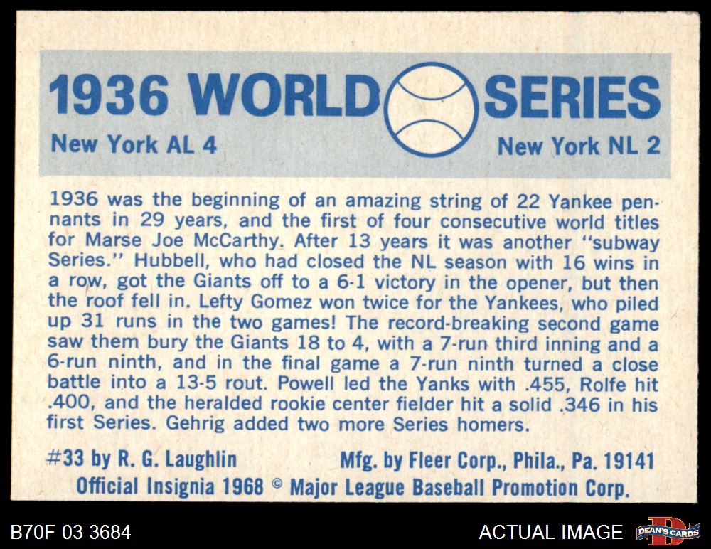 1970 Fleer World Series #33 1936 Yankees vs. Giants 7 - NM