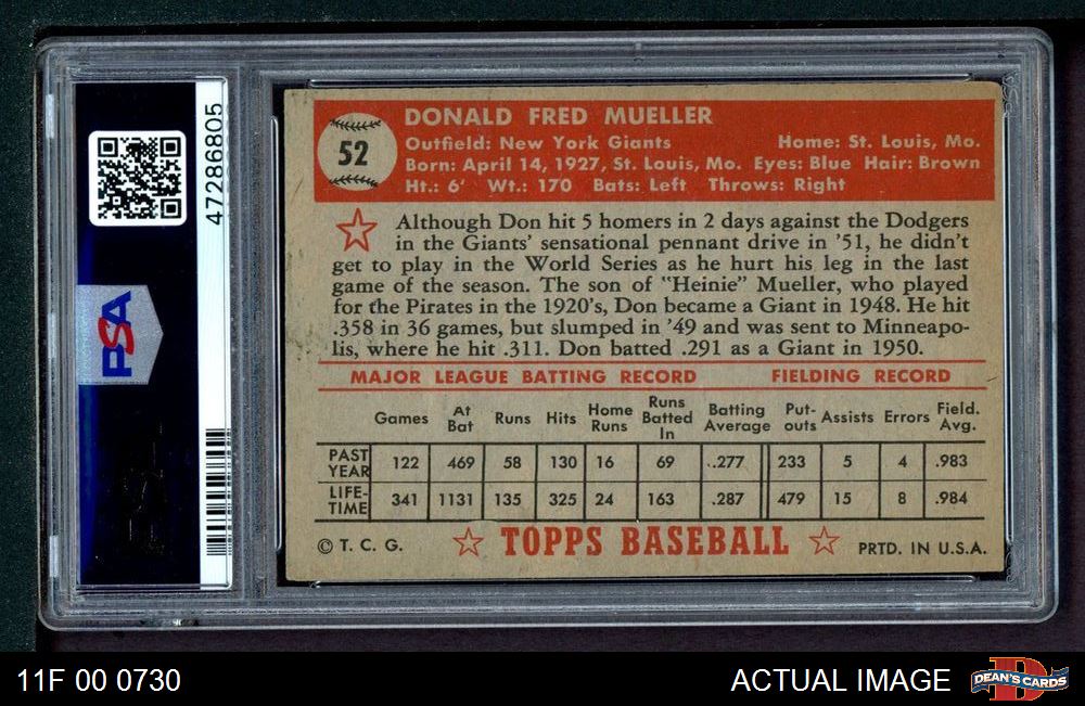 1952 Topps #52 Don Mueller PSA 4 - VG/EX